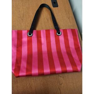 Victoria's Secret Hot Pink Striped Satin Finish Tote Bag