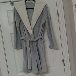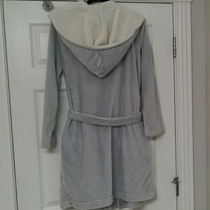 Victoria Secret grey plush robe. Size M/L. Pockets and Sherpa style hood. Great condition