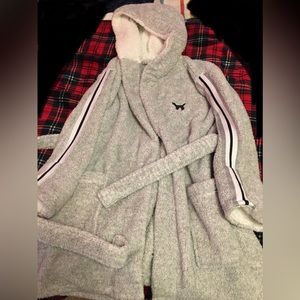 Victoria Secret Robe size xs/s fits like a comfortable small, like new, sparkly, the word pink and the dog logo on front are also sparkly, very nice and soft, smoke free home