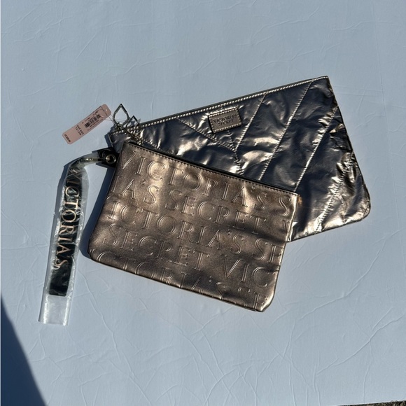 Victoria Secret Rose Gold Clutch/Tote/Cosmetic Bag Two Piece NWT Zipper Closure