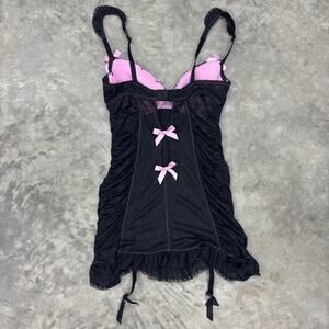 Victoria Secret Sexy Little Things Garter Dress Babydoll Chemise Lace Bow 36C