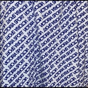 Victoria Sport repeated on this top by Victoria Secret - Sport. Has 2 knot-holes on the back down the middle, ending in a tie/know. Worn only a few times.