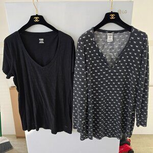 4. Victoria's Secret Lot of 3 Black Short Sleeve V-Neck T-Shirts in Size L