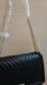 Elegant black quilted shoulder bag with gold chain accents. Perfect for any occasion.
