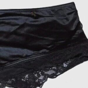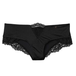 Victoria Secret Smooth Cheeky Panty Lace Inset Black Silky Gold V Charm L XL