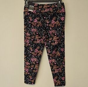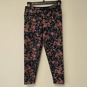 Victoria Secret Sport Stars Pink Floral Black High Rise 7/8 Leggings L