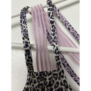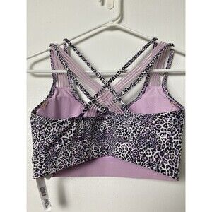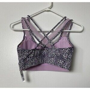 Victoria Secret Sports Bra Women Small Animal Print Leopard Lila pastel Strappy Cross Back removable pads pre owned in excellent condition see pictures for more details