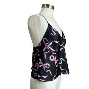 Victoria Secret Stain Open Back Black & Pink Bow Cami Size XL