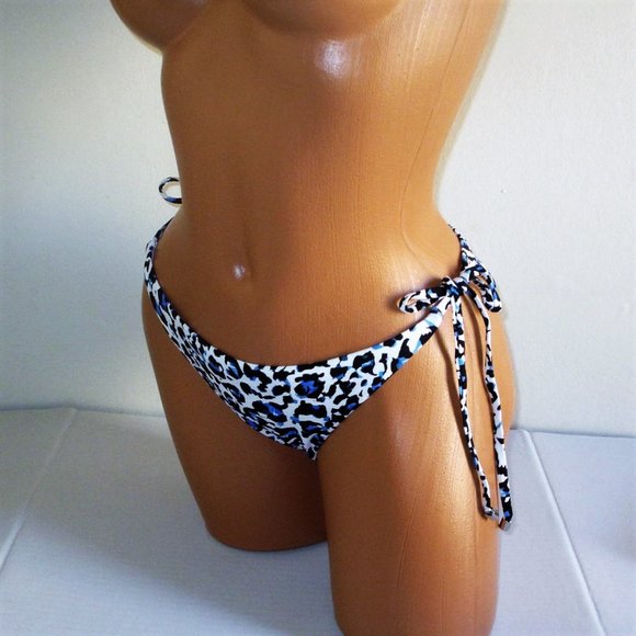 Victoria Secret Swim Bikini Bottom Extra-Large Side Tie Blue White Black Leopard