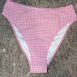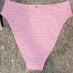 Victoria Secret Swim Bikini Bottom High Waist Cheeky Pink White Gingham - Size M