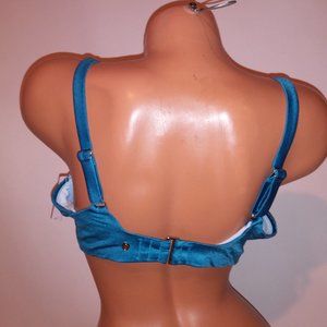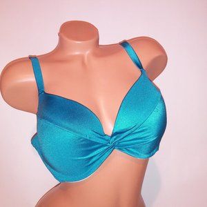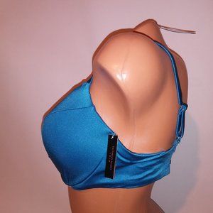 Victoria Secret Swim Bikini Top 38D Solid Blue Twist Push Up Shimmer New