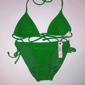 Victoria Secret Swim Bikini XS Top & Bottom Green Textured Solid String Triangle