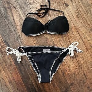 Victoria Secret Swim Black & Cream Crochet Bikini