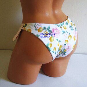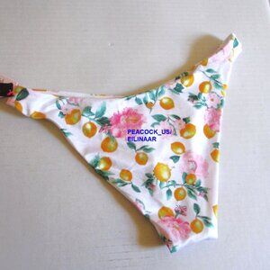 Victoria Secret Swim Brazilian Bikini Bottom LARGE White Floral Lemons nwt