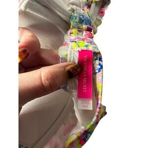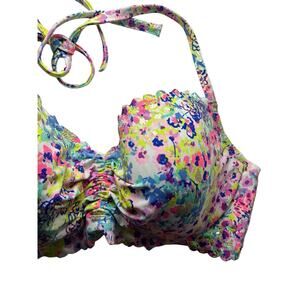 Victoria Secret Swim Womens 36D Bikini Halter Top Floral Pink Scalloped Full Cup