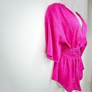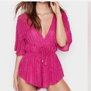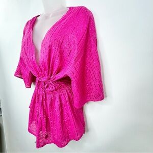 Victoria Secret Swimsuit Cover Up Pink~Metallic Stripe~Women Sz XS~Elastic Waist