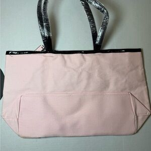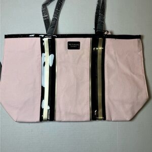 Victoria Secret TRAVEL Glass Stripe City Tote Bag BEACH Wristlet Pink Black Ltd