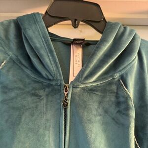 Victoria Secret Teal/Green Velour Tracksuit Cropped Hoodie Jogger