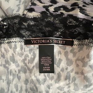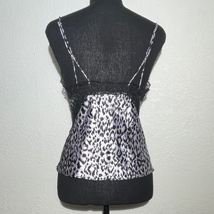 Victoria Secret lace and silk-like, animal print with silver and lavender - up & down strips (some say) multi blouse.