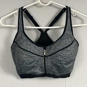 Victoria Secret VSX Knockout Black/Gray Front Zip Padded Sports Bra Size 34DDD