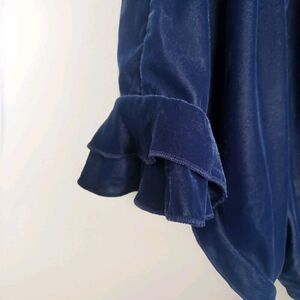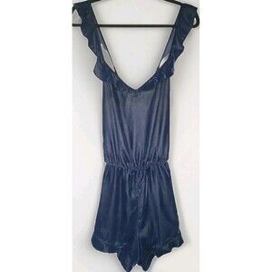 Victoria Secret Velour Romper Womens Small Navy Ruffle Trim Criss Cross Back