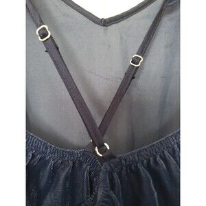 Elevate your loungewear or sleepwear collection with this stunning Victoria's Secret velour romper in a beautiful navy blue color. This one-piece is crafted from 100% polyester with a velvet fabric type that adds a touch of luxury to your wardrobe. The romper features a V-neckline and sleeveless design with ruffle accents and a criss-cross back that adds a touch of sophistication to your look.
