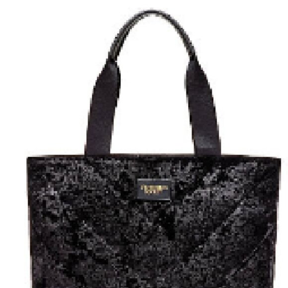 A very nice quality velvet Tote. It has a snap closure & is longer than it is wide.