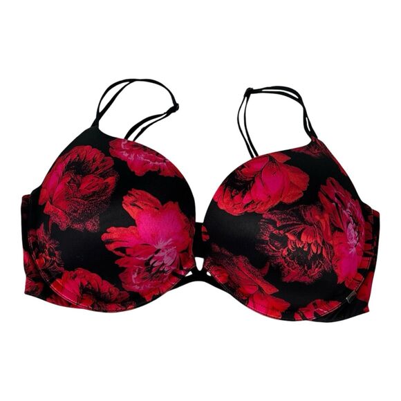 Victoria Secret Very Sexy Push Up Bra Red Floral Black Colorful 34DD
