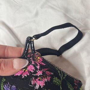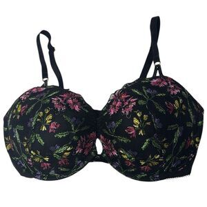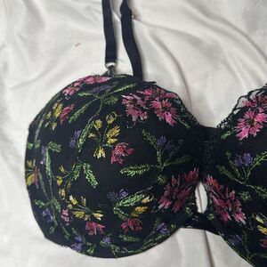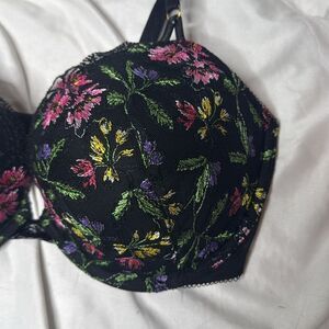 Victoria Secret Very Sexy Push Up Floral Embroidered/Leather Bra. Size 34DD. Elegant black bra with vibrant floral embroidery. Perfect for adding a touch of sophistication to your intimate collection. Excellent like new condition.