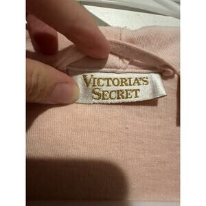 Indulge in luxurious comfort with this Victoria's Secret vintage cotton robe, featuring a delicate pink hue and elegant lace trim. This one size fits all robe is perfect for any woman who wants to add a touch of classic 90s style to her sleepwear routine. Made from high-quality cotton and lace fabric, this robe is both soft and durable, ensuring that it will last for many weary nights to come. The gold label adds a touch of sophistication to this charming piece, making it the perfect addition to any woman's sleepwear collection.