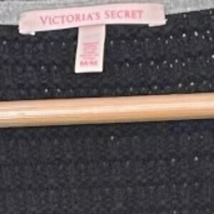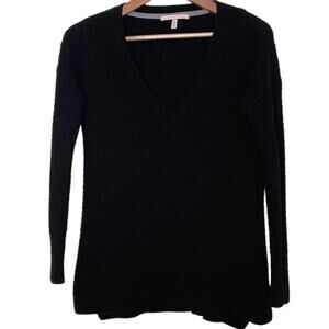 Victoria Secret Waffle Knit Sweater Cotton V-Neck Black Size Medium