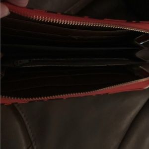 Beautiful red wallet. New without tags. Nice and roomy. 12 Card slots. Zipper pocket for change. 4 slots for bills. Smoke free home. Gold hardware.