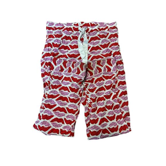 Victoria Secret White Soft Cotton with Pink Red Lips Pajama Pants Size LG