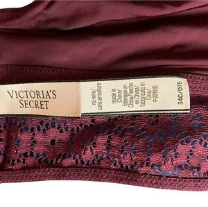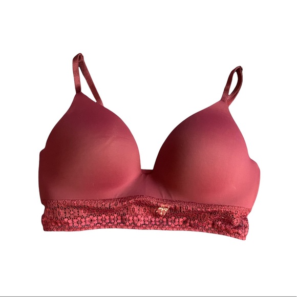 Victoria Secret Wireless Bra Red Burgundy Light Padded Stretch Size 34C NEW