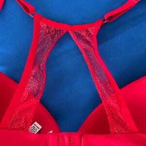 Victoria Secret Women T Shirt Lightly Lined Wireless Bra Size 32DD Red Racerback
