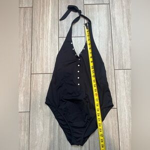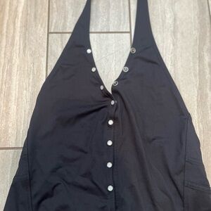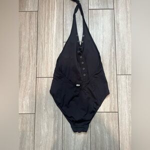 Victoria Secret Womens Black Button Halter One Piece Bathing Suit Size Small