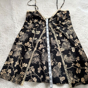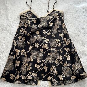 This Victoria's Secret cami is a stylish and feminine sleepwear piece in size Small. It features a beautiful floral lace front with a V-neckline and sleeveless design. The tie closure adds a delicate touch to the garment. Made of lightweight polyester material with a lace fabric type, this cami is perfect for warm seasons like summer, spring, and fall. The black color and classic floral pattern make it a timeless addition to your sleepwear collection.