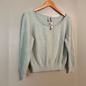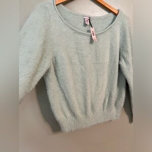Victoria Secret Womens Green Fuzzy Long Sleeves Crop Pullover Sweater M NWT