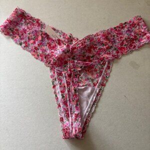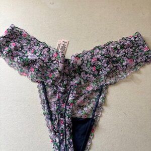 Victoria Secret Women's Size M Stretch Lace Floral Hipster Thong/String Panties, Stretch Lace, Pink Floral, Black Floral, Set of 2, NWT.