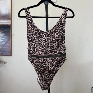 Victoria Secret 11200593 Women's Leopard Shine Strap Plunge One-Piece Swimsuit Size L