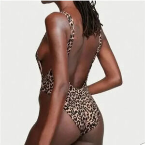 Victoria Secret Women's Leopard Shine Strap Plunge One-Piece Swimsuit Si…