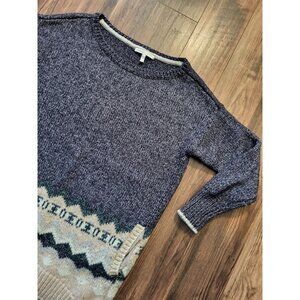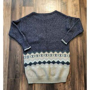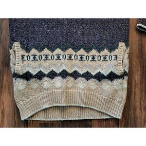 Victoria Secret Wool Blend Tunic Sweater Pockets Blue Tan 3/4 Sleeve Sz M