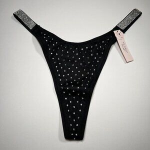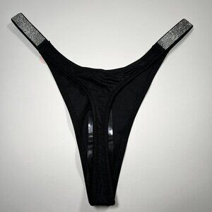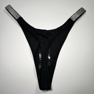 Victoria Secret Thong String Bikini Bottom Rhinestone Shine Strap Black