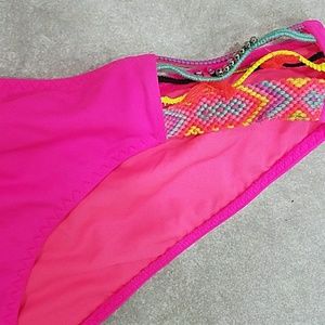 Sexy neon yellow bottoms sz LG NWT and liner, NWOT hot pink cheeky bottoms sz MD and 36C Re posh used in New condition halter top! All are included and ready for summer love!