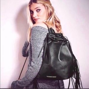 Victoria Secret Black fringe sling backpack