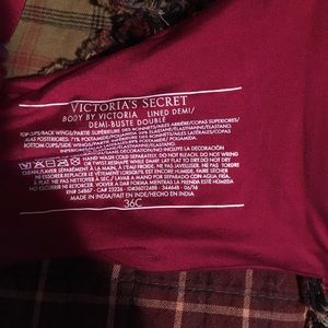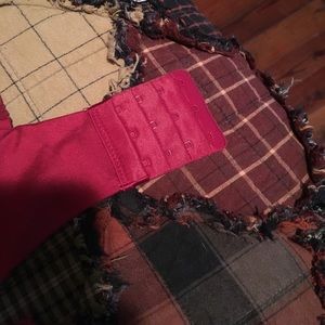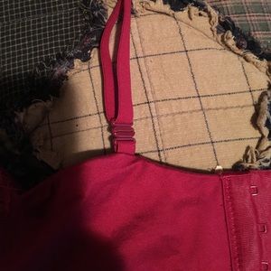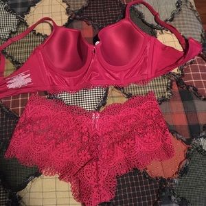 Victoria secret bra and panty set. Red in color. Small pink bow on the bra in between cups. Bra size 36C. Mix match straps making it capable for criss cross back. Panty size Medium, cheekster/shortie style fit. Worn once for a photo shoot. Smoke free home.
