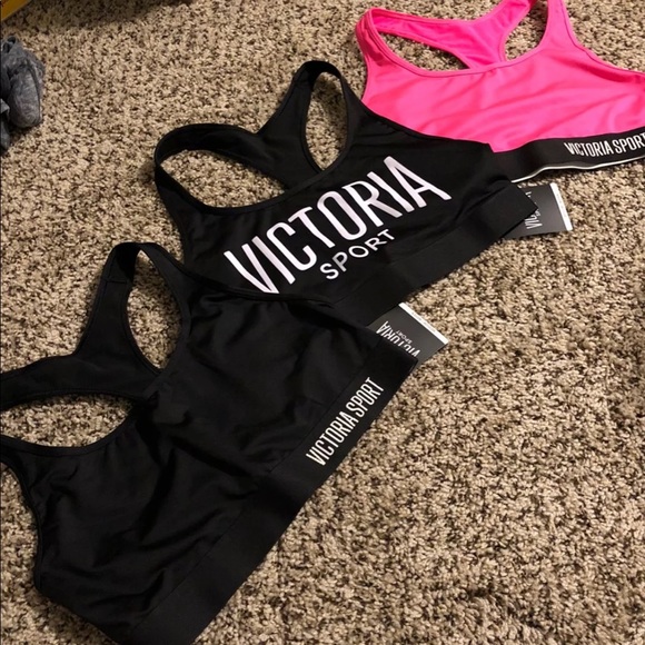 3 black bras, 1 middle with logo across chest, 1 hot pink, please comment the color you’d like