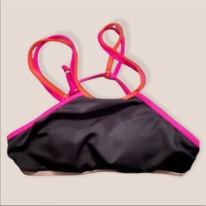 Victoria Secret halter bathing suit Black Orange & Pink Top Size Med Swim Beach