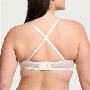 Victoria Secret. 38DD. Color is BRIGHT YELLOW. This pretty style solution is crafted in our stretchy and ultra-soft Posey Lace and offers multiple ways to wear it—strapless, standard, single strap, or crossback— thanks to removable, fully adjustable straps.