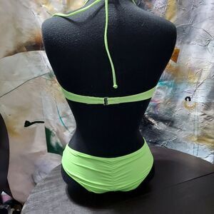 Victoria Secret lime green 2 piece bikini S/P small red die stain on bottoms in photos